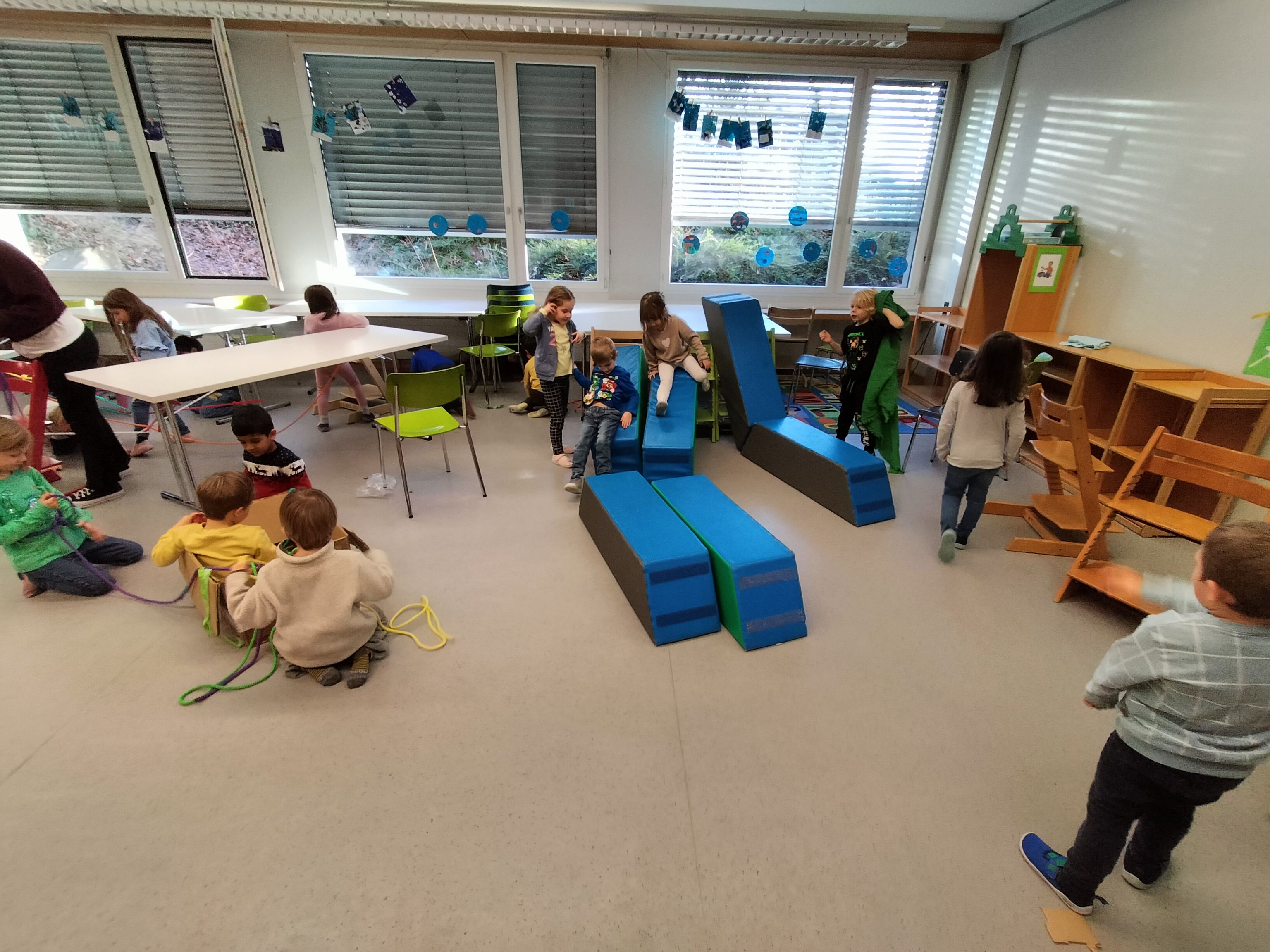 Hier sind einige Eindrücke von unserem Pilotprojekt – wir sind jetzt spielzeugfrei! Die ersten Reaktionen sind durchweg positiv. Das Team hat sich schnell an die neue Umgebung gewöhnt und die Kinder zeigen ein bemerkenswertes Mass an Kreativität und Eigeninitiative. Es ist faszinierend zu beobachten, wie sie alternative Spielmöglichkeiten und neue Wege zur Problemlösung finden bei kleineren Konflikten.