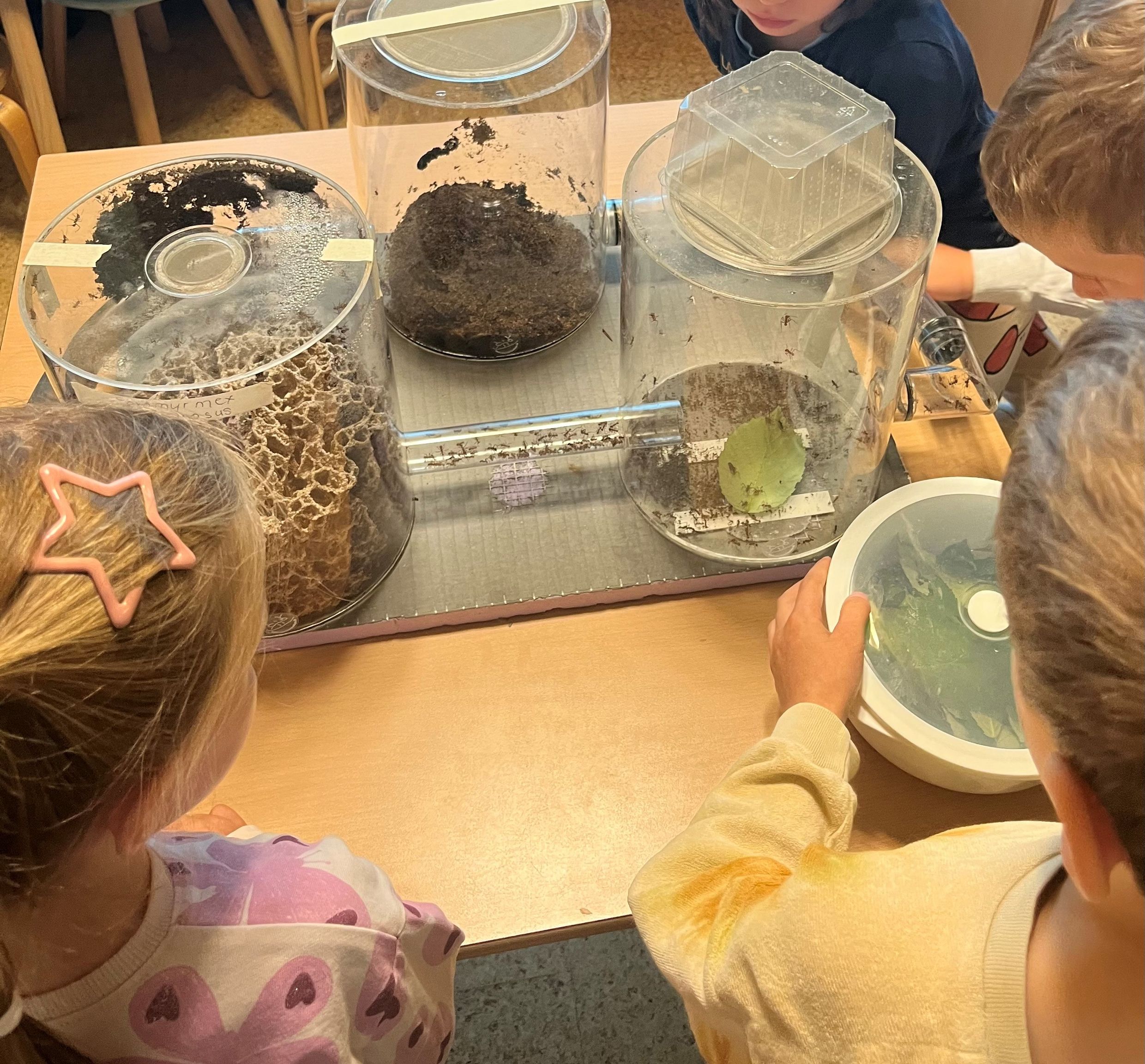 Vier Tage lang hatten die Kinder vom Kindergarten Stocken ganz besondere Gäste: Blattschneiderameisen aus Südamerika und Körnerameisen. In unserer Forscherecke konnten die Kinder die fleissigen Ameisen genau beobachten.