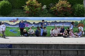 Der Motto-Vorschlag kam von den Lehrpersonen. Für die Bild-Ideen hat ein Zeichnungsaufruf bei den Kindern stattgefunden. (Diejenige Zeichnung, die als Vorlage diente, ist weiter unten abgebildet.)